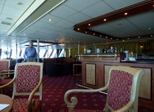 We had been issued nametags prior to our arrival. Unfortunately Butch’s nametag said “Harold”. Not that there is anything wrong with the name Harold mind you (though one could argue that it is rather “stuffy”) but Butch goes by Butch……period. He went to the program director’s desk to ask Bob about a new name badge. They did not have the capability of producing another one on the ship so Bob simply turned the badge over and pointed out that he could put whatever he wanted on the other side with a magic marker. Butch said “But I didn’t bring a magic marker” and Bob said “Well here, use mine”. So now he had a nametag that could be seen across the room with the name Butch on it. By the way, we think that the mostly Eastern European crew had not previously been exposed to this name as they pronounced it “Buttch”. They probably also had not been exposed to the pronunciation of owl. One of them pointed out the owl which of course is on all of Butch’s shirt pockets. “Look, Buttch has an owl on his shirt”- owl rhyming with bowl….