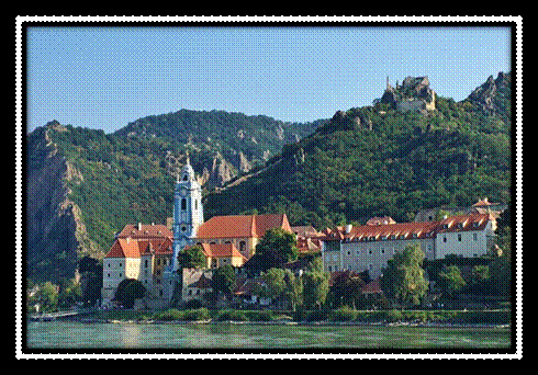 We had a beautiful, beautiful cruise in the morning through the Wachau valley on the Danube. There were many, many vineyards terracing the sides of the hills and also some orchards (especially apricots). There were also lots of cute little towns with beautiful churches and crumbling castle ruins on the hills. Bike riders were traveling along the shore on bike paths. In this scenic area no bridges are allowed to be built so ferries are scattered along the river. For a special treat an old nude couple was walking their dog along the shore. They proudly waved at us…. Here are various pictures along this portion of the river (minus the nude couple):